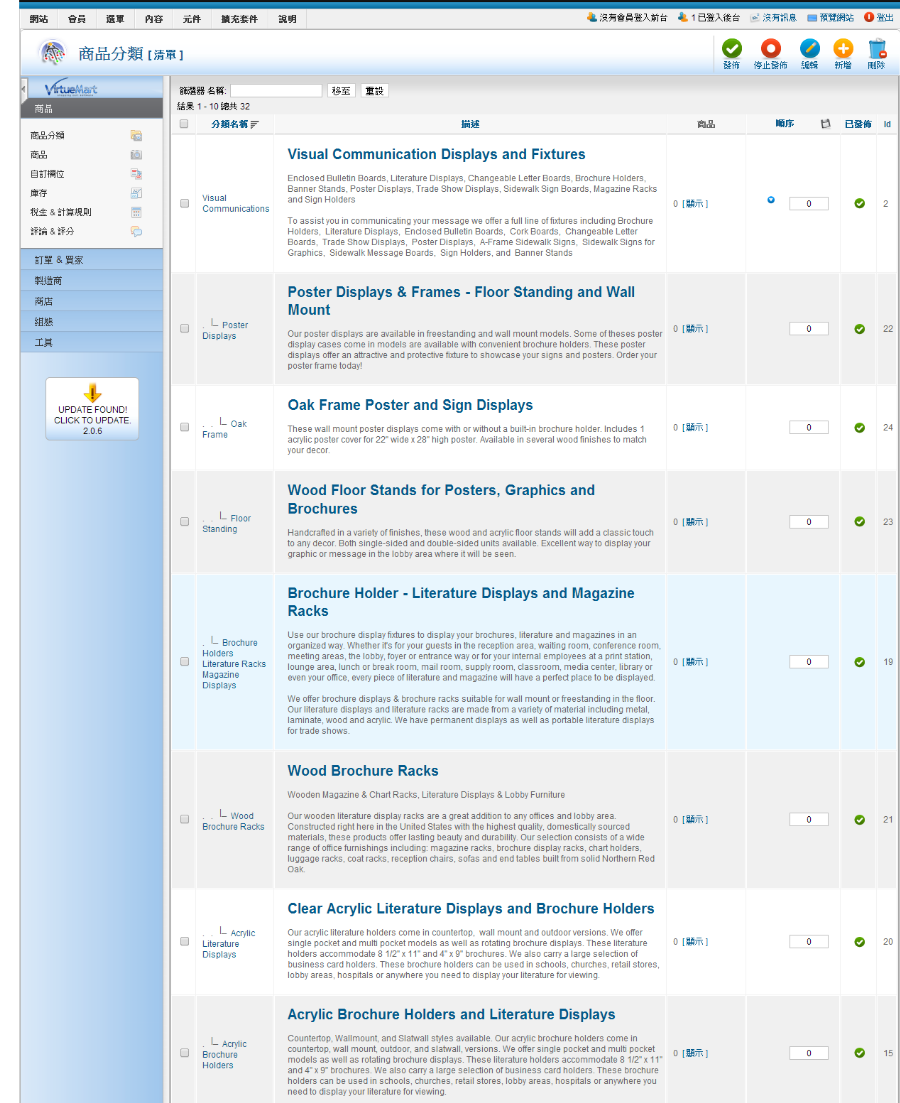 系統說明本網站為一商品外銷公司的官方網站,提供完整的商品介紹、商品下單功能,也包含廣告展示區塊與最新消息功能,除此之外,後台的上架系統也是一大亮點,透過商品上架系統可以快速的建立商品分類、上架新商品,亦能管理管理訂單與管理庫存,透過此系統,能讓消費者快速了解公司所販售的商品,與詳細規格,更能讓消費者在網路上快速訂購。 |