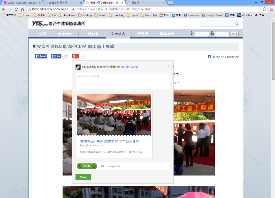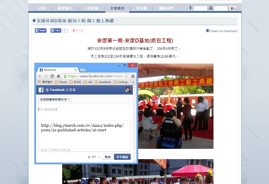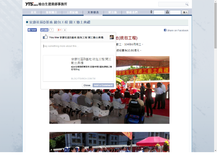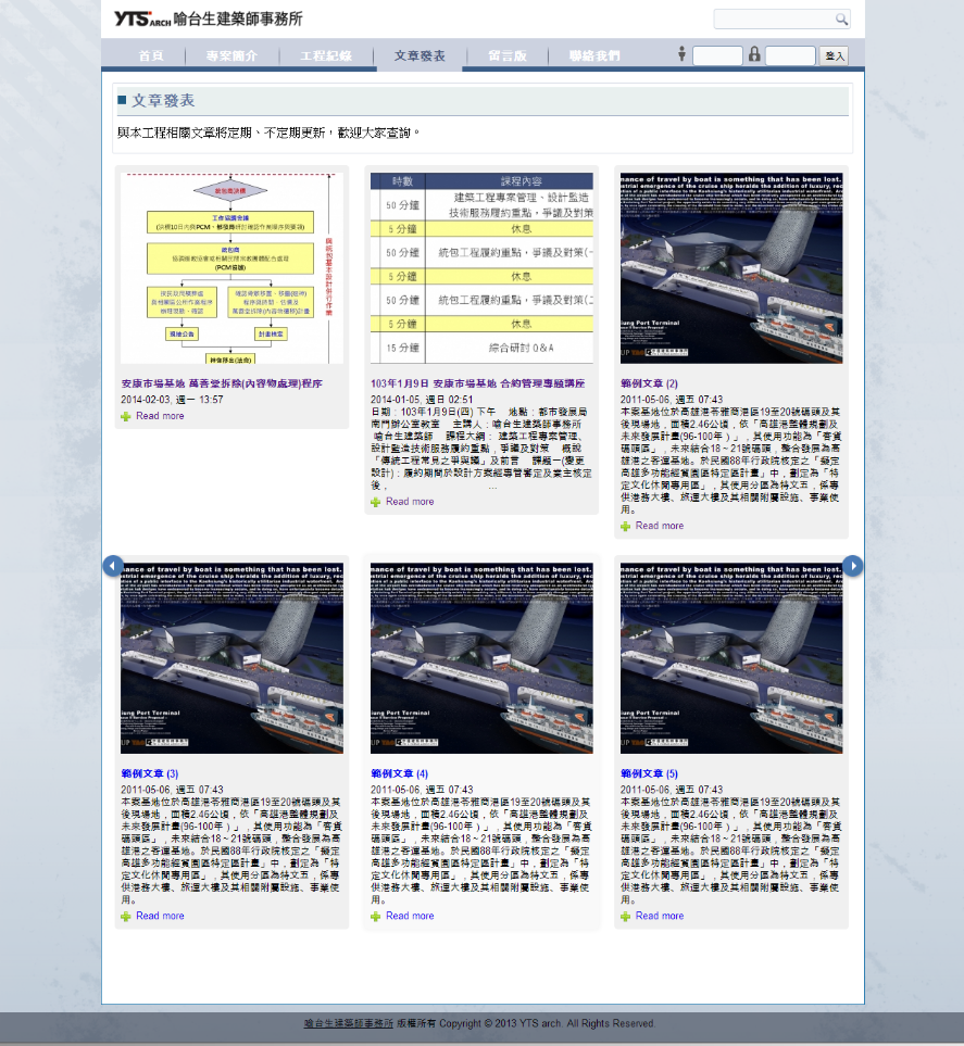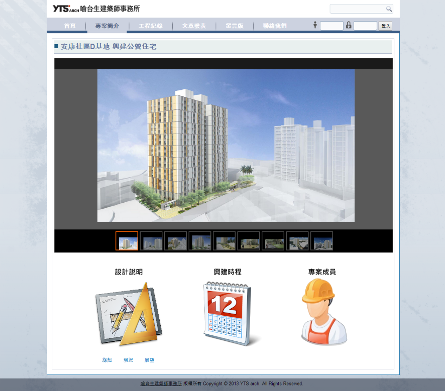 系統說明本網站為一建築師事務所之專案部落格系統,包含專案簡介、工程計祿、文章發表、留言板與最新動態,本系統的特色為新增專案時,可以透過再製的功能建立全新的專案專屬部落格,提供業主、事務所與承包商共同溝通平台,進而提升三方溝通的效率。 |