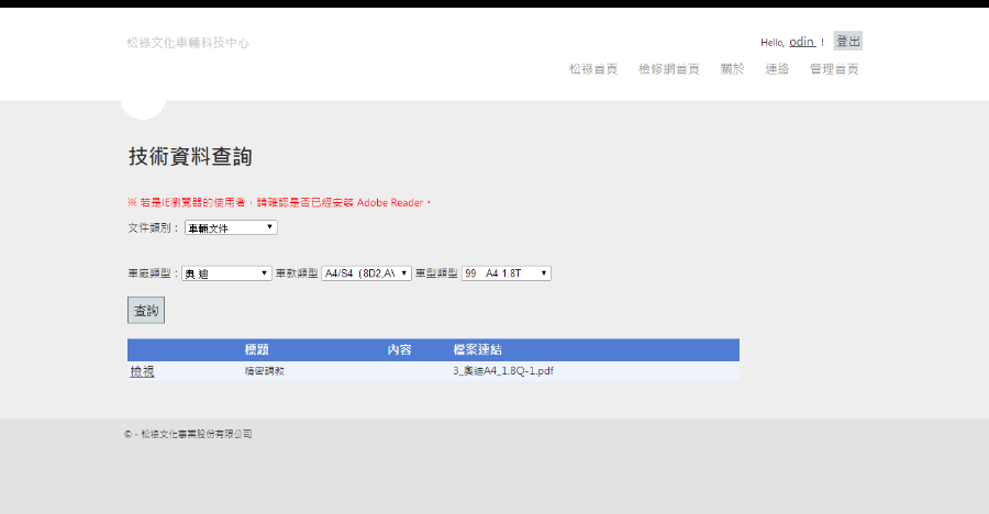 系統說明本系統提供完整的帳號啟用機制,防止帳號借用與喝止帳號盜用的問題,藉由經銷授權的功能與完整的帳號機制,來管控系統上的知識文件,包含技術教學影片、技術資料、油品資料等。除此之外,本系統尚包含電子報寄送的功能,透過電子報的寄出來增加資訊的曝光程度。 |