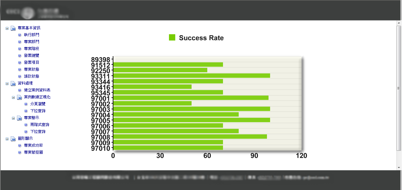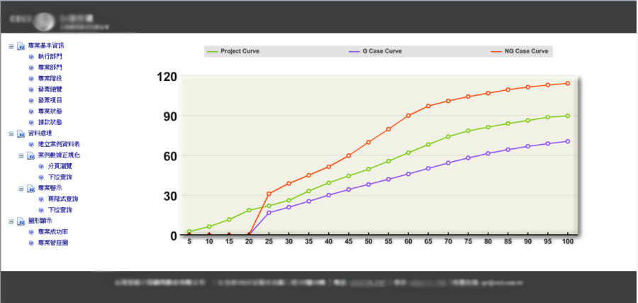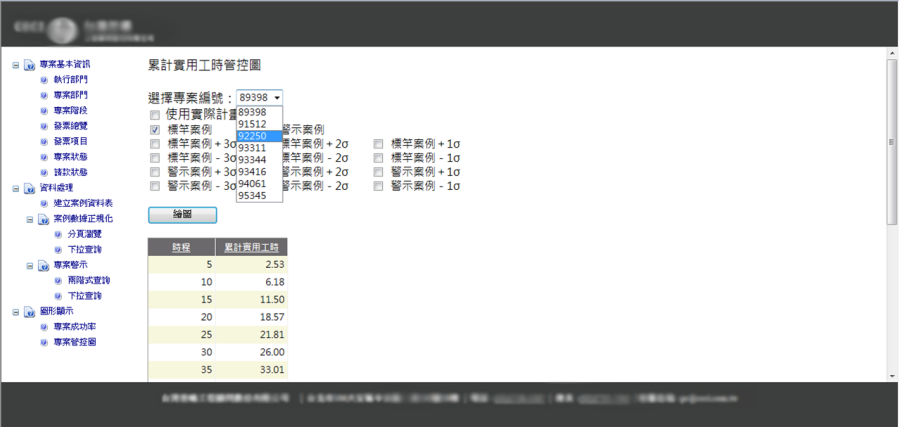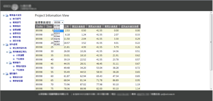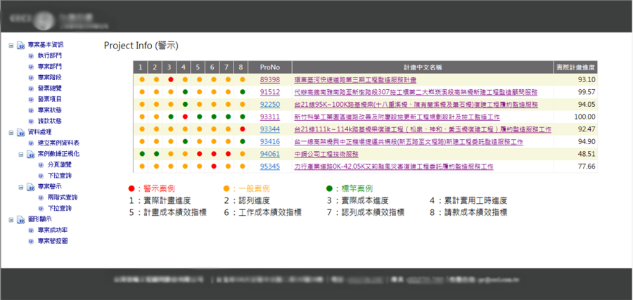 系統說明傳統的專案控制多依賴專案管理人員的經驗,難以形成客觀與系統化之控制方法和模式。本系統將分析美國營建研究院所發展的計畫績效評估理論,利用此一理論來收集並分析已完成的專案資料,以執行績效指標繪製管控曲線表現成功與失敗專案的差異,使專案管理人員能夠透過管控曲線,參考過去專案的表現並應用於目前進行中的專案。本系統著眼於根據以前標竿或警示的標準案例資料庫,利用績效指標來及時管控現有的工程。這一工程績效管控工具的主要目標是提供給工程專案經理在整個工程的生命週期能夠利用績效指標連續並及時地管控工程成本及進度。本系統將建立以網際網路(INTERNET)為基礎之績效評估資訊系統,運用分散式共享整合資料庫來儲存與管理已被標準化之工程績效紀錄使得所有工程績效資訊得以交換和互通共享,以期能有效地提高計畫執行績效。 |