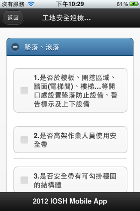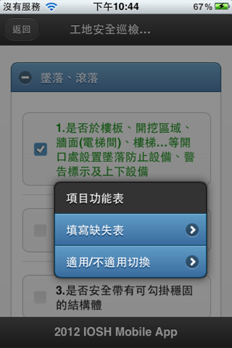 系統說明營建工程因其工作場所係屬開放空間,外在與內在環境的變化會導致不同安全風險的潛在危險,而安全巡檢是實務上監控工地安全的可行方法。然而,目前現場安全巡檢的方式仍以傳統紙筆紀錄為主,但因為文件化作業繁雜、資訊不即時,以及知識不易累積等問題,造成工地安全巡檢的效果仍有改善的空間。鑑此,本系統透過智慧型手持裝置的應用,開發適用於營造業的手持式工地安全巡檢智慧型紀錄模組,以克服營造業在傳統紙筆方式所造成的等問題。 |